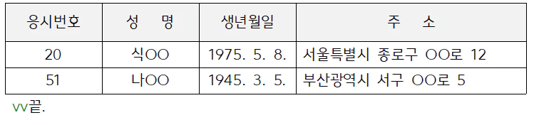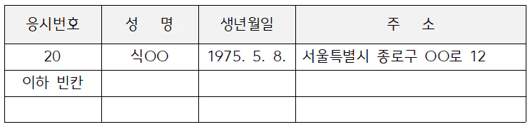 나. 표의 중간에서 기재사항이 끝나는 경우: [**끝**] 표시를 하지 않고 마지막으로 작성된 칸의 다음 칸에 [형광*이하 빈칸*] 표시