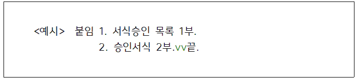 2. 첨부물이 있으면 붙임 표시문 다음에 한 글자[작게*2타*] 띄우고 표시한다.