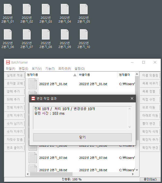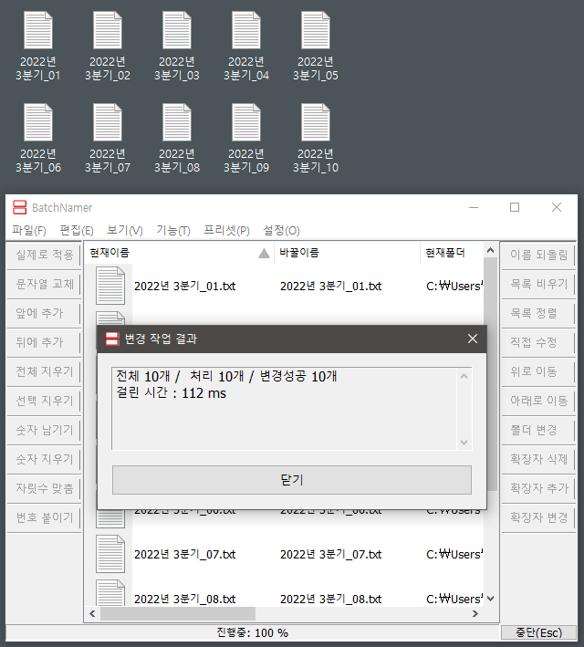 - 여러 파일/폴더의 이름을 한 번에 변환할 수 있다.