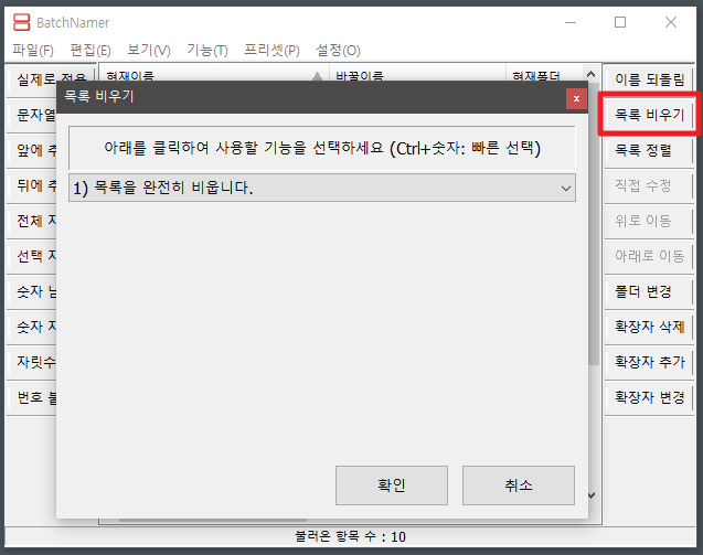 1. 최종 파일명 변경 후 재작업 또는 잘못 선택된 파일명이 있을 때 목록 비우기 한다.