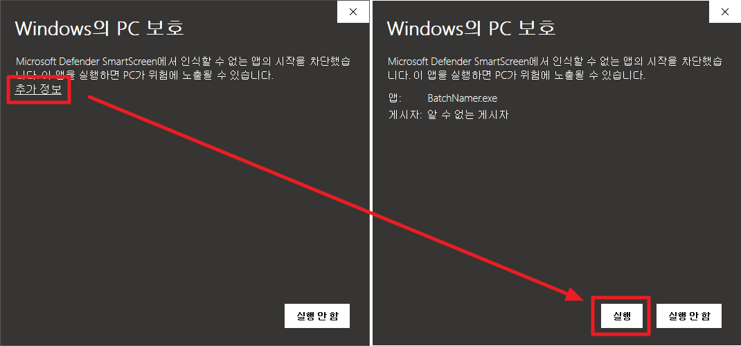 [작게* - 윈도우 보호 관련 메시지가 뜰 수 있으며, *][**바이러스 검사**][작게* 시 바이러스가 검출되지 않았습니다.*]