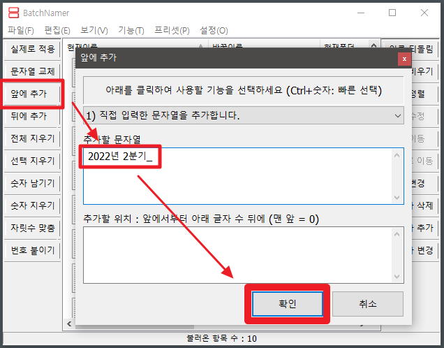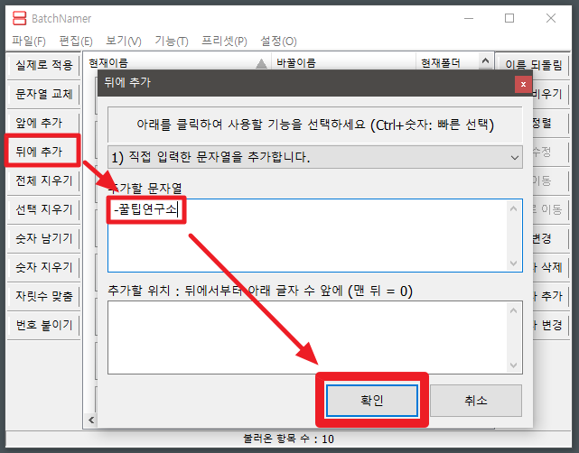 3. 파일명 중 문자열 교체할 항목을 작성한다.