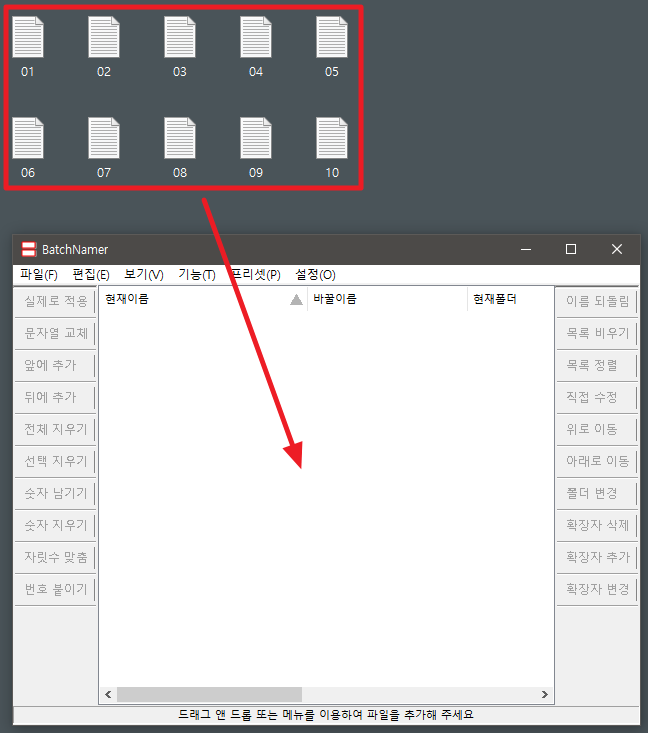 1. BanthNamer 프로그램이 켜진 상태에서 파일을 끌어서 놓는다.