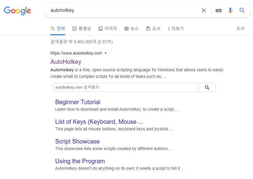 1. 오토핫키 사이트 방문 또는 구글에서 [**AutoHotKey**] [작게*(영문명으로)*] 검색한다.