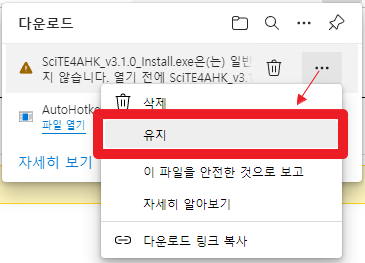 3. 다운로드 시 경고 메시지가 뜨면서 다운로드 [블럭*보류*]가 될 수 있으나, 아래의 방법으로 다운로드한다.