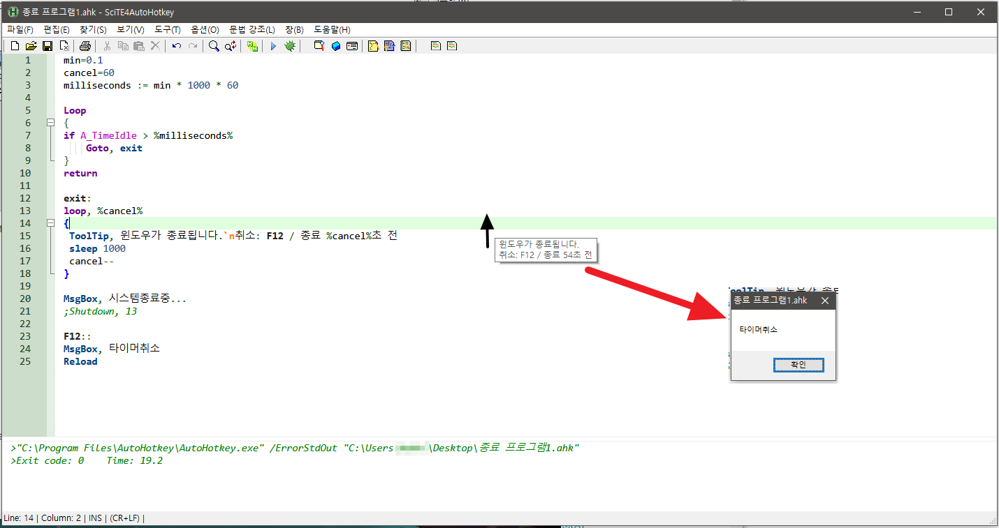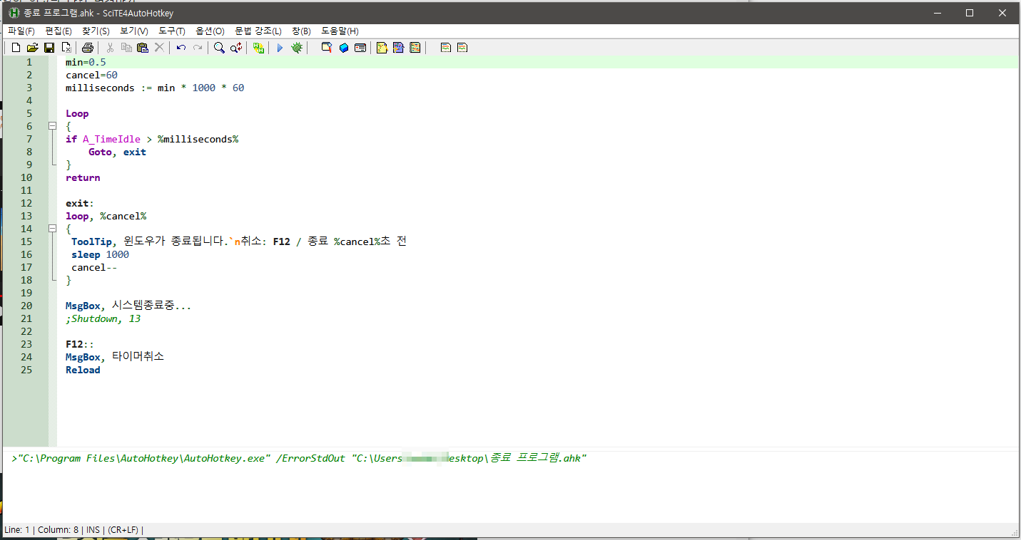 3. 종료 프로그램.ahk 파일을 더블클릭하면, 오토핫키 에디터가 뜬다.