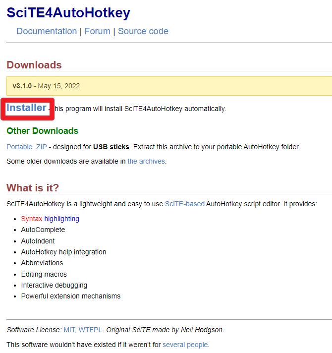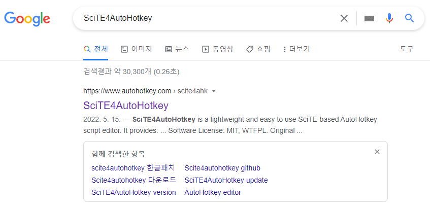 1. 오토핫키 에디터 사이트 방문 또는 구글에서 [**SciTE4AutoHotKey**] [작게*(영문명으로)*] 검색한다.