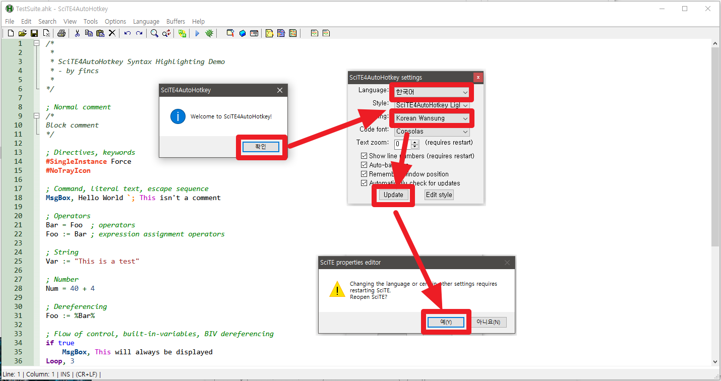위의 7가지 단계를 거쳐 오토핫키 에디터 설치가 완료되었습니다. 이제 문법 강조를 통해서 편리하게 코딩에 임할 수 있습니다.