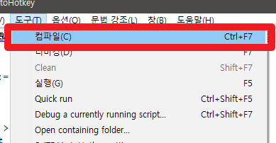 [작게* *에디터 도구-컴파일하거나, *. ahk 파일 위에서 오른쪽 클릭해서 나오는 Compile Script를 누르면 같은 장소에 실행파일이 생긴다.*]